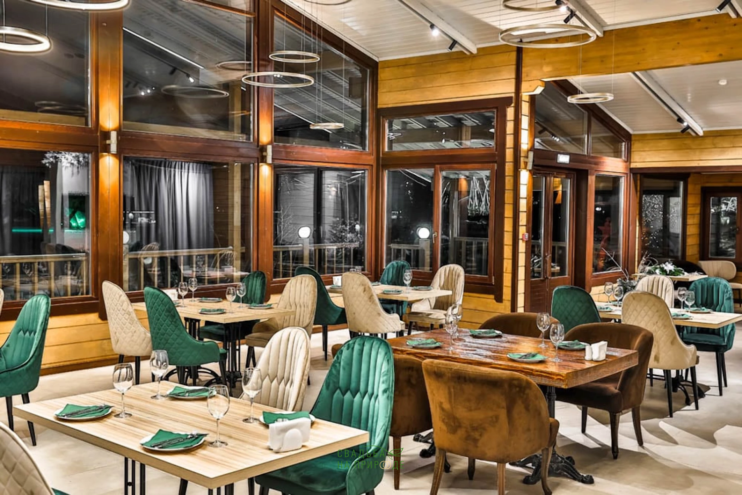 Срубы, бунгало, кемпинг, крошечные водоёмы. Закос под Русь бревенчатую, но не поверилось)) хотя мило.