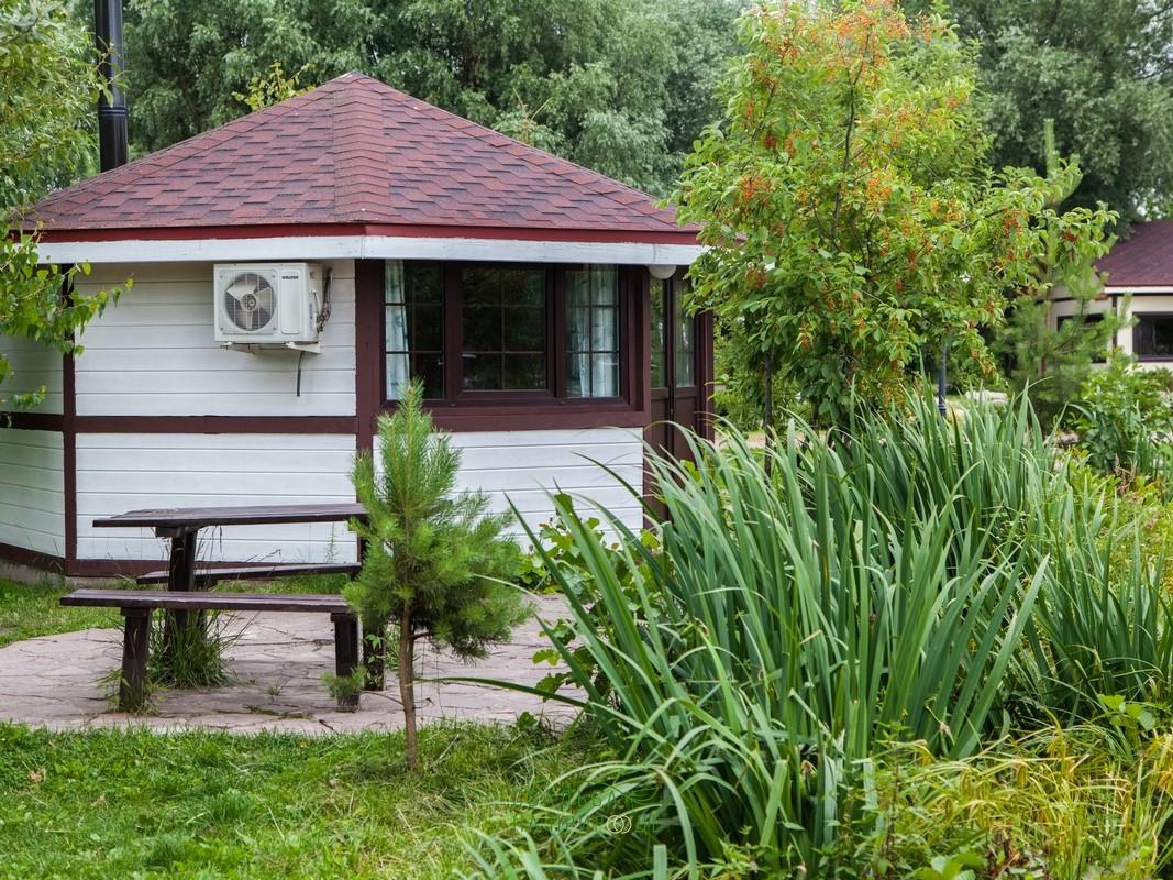 По всей территории теплые купола-беседки.