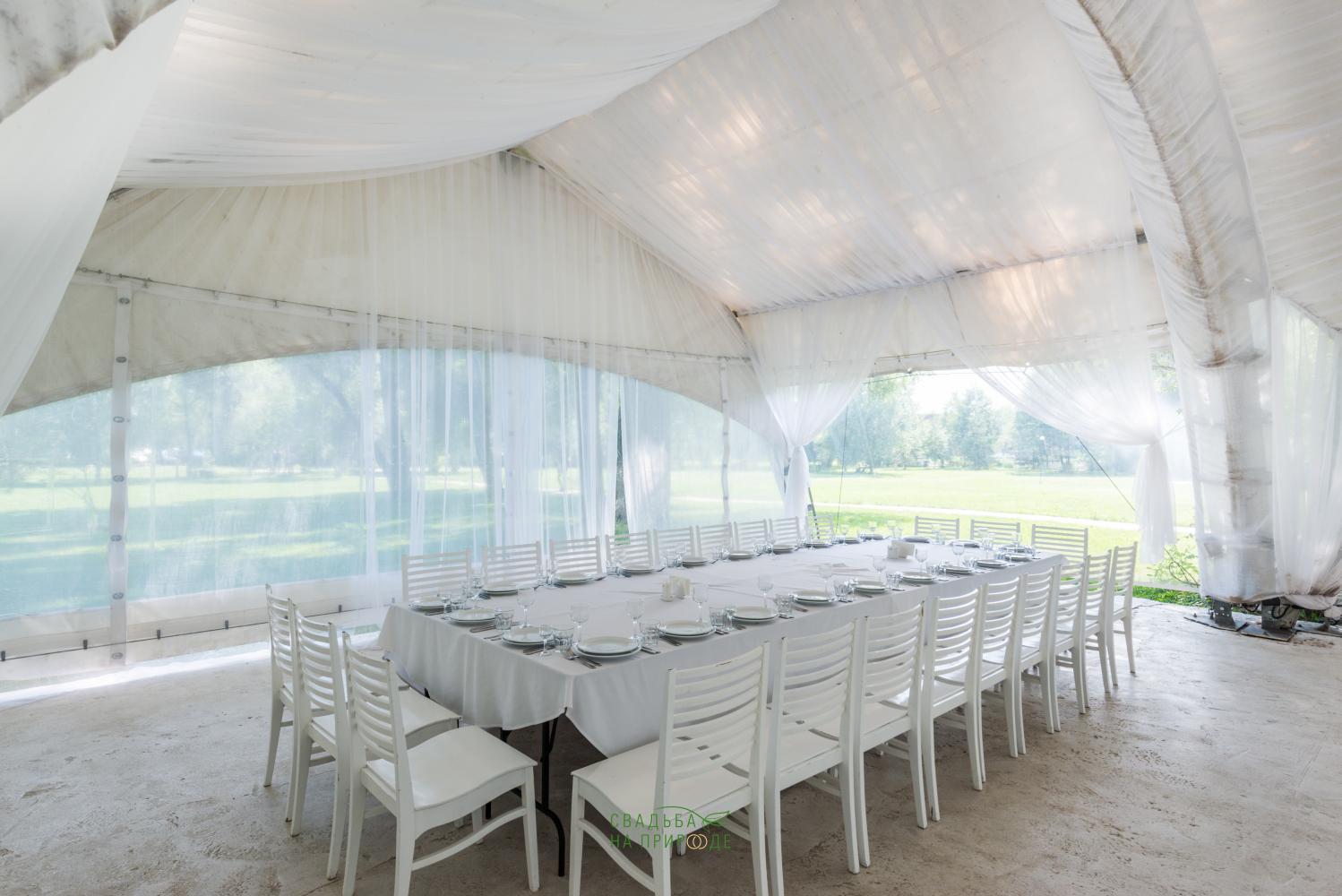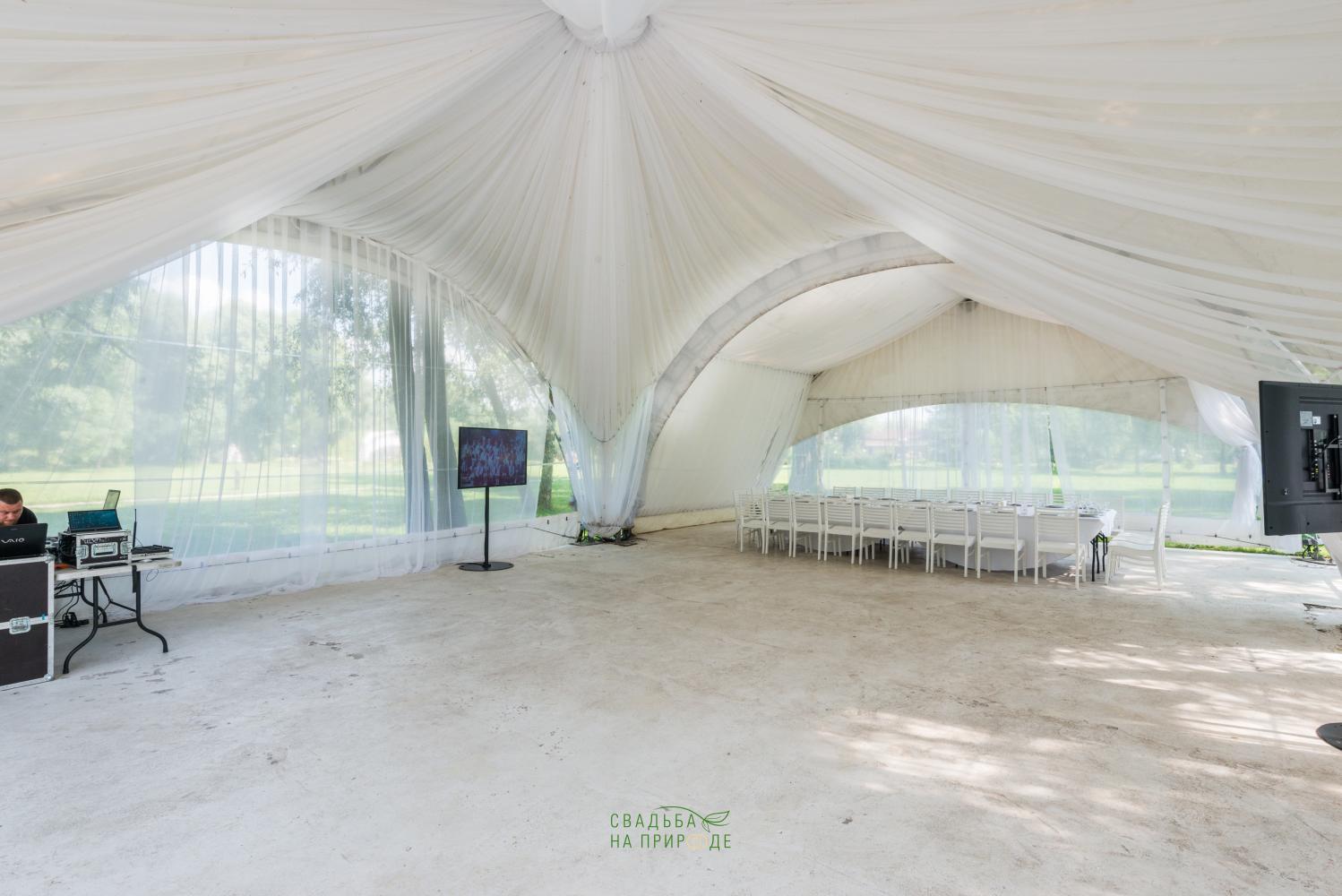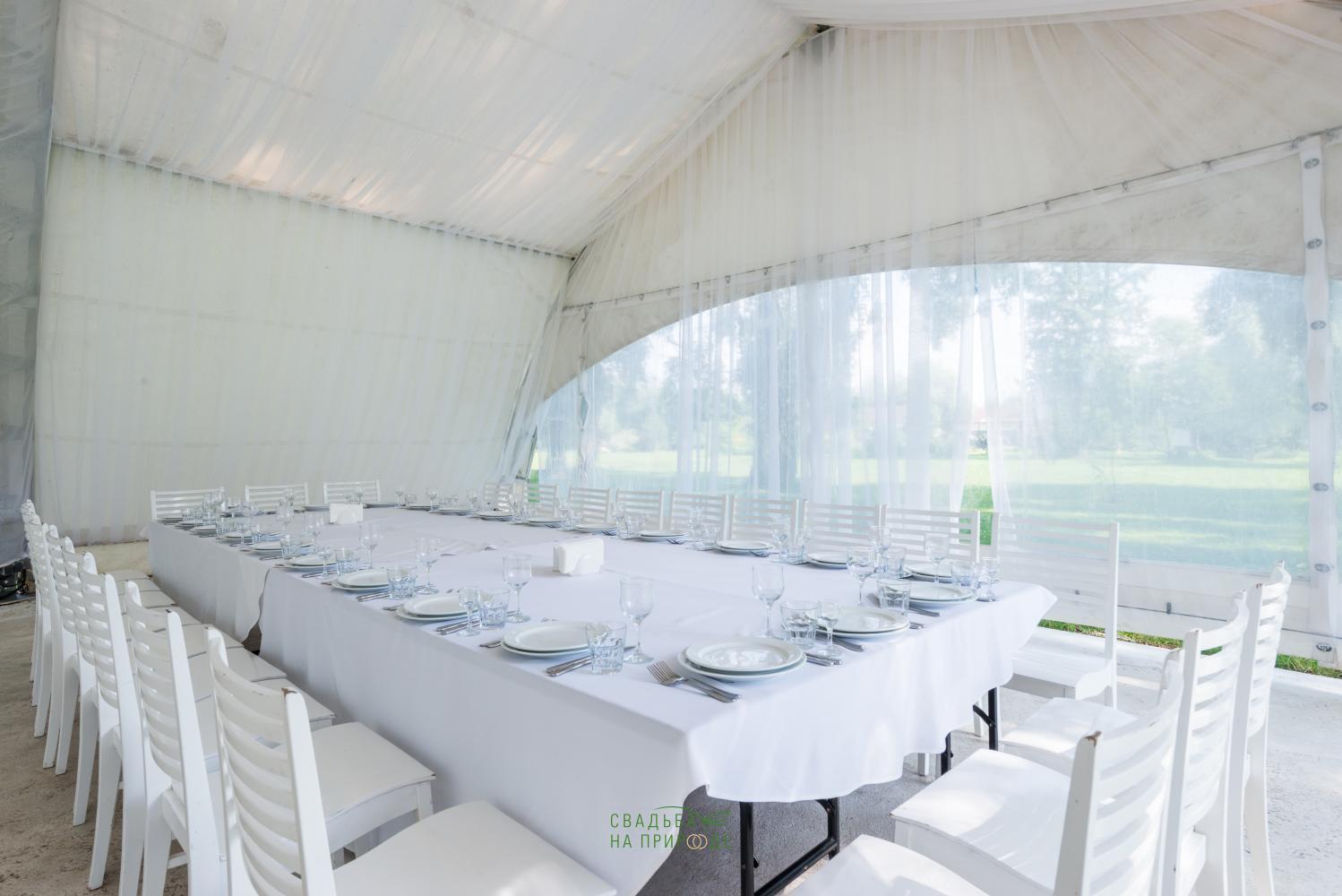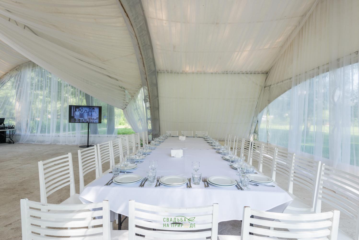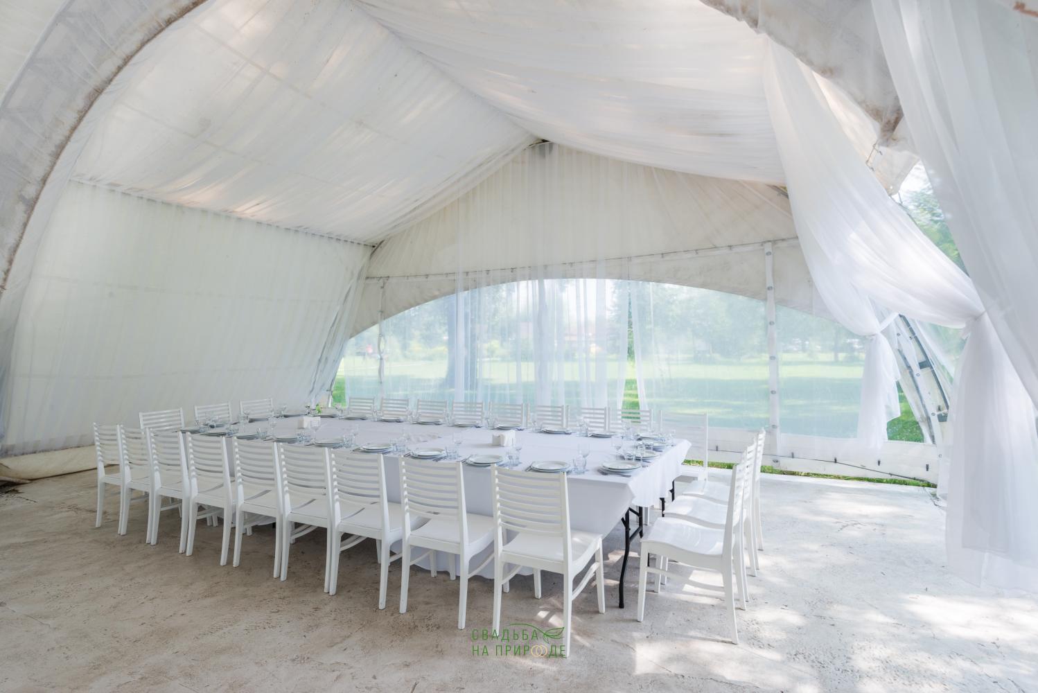 Сам шатер и внутреннее оборудование было в отличном состоянии: столы, стулья, скатерти - все было достаточно новым.