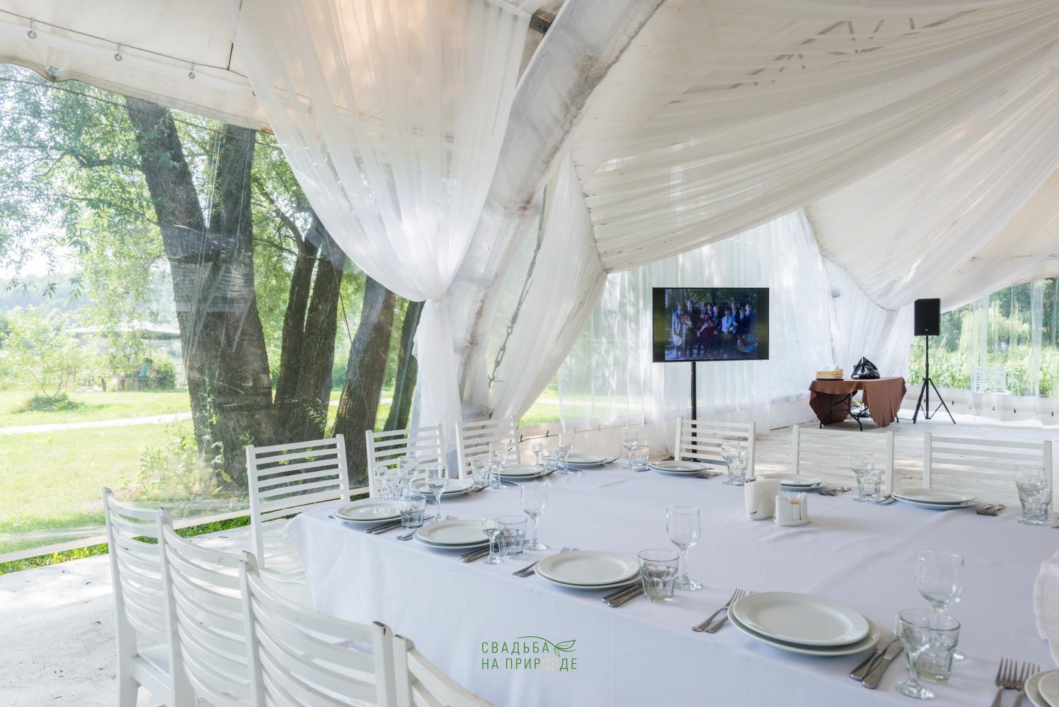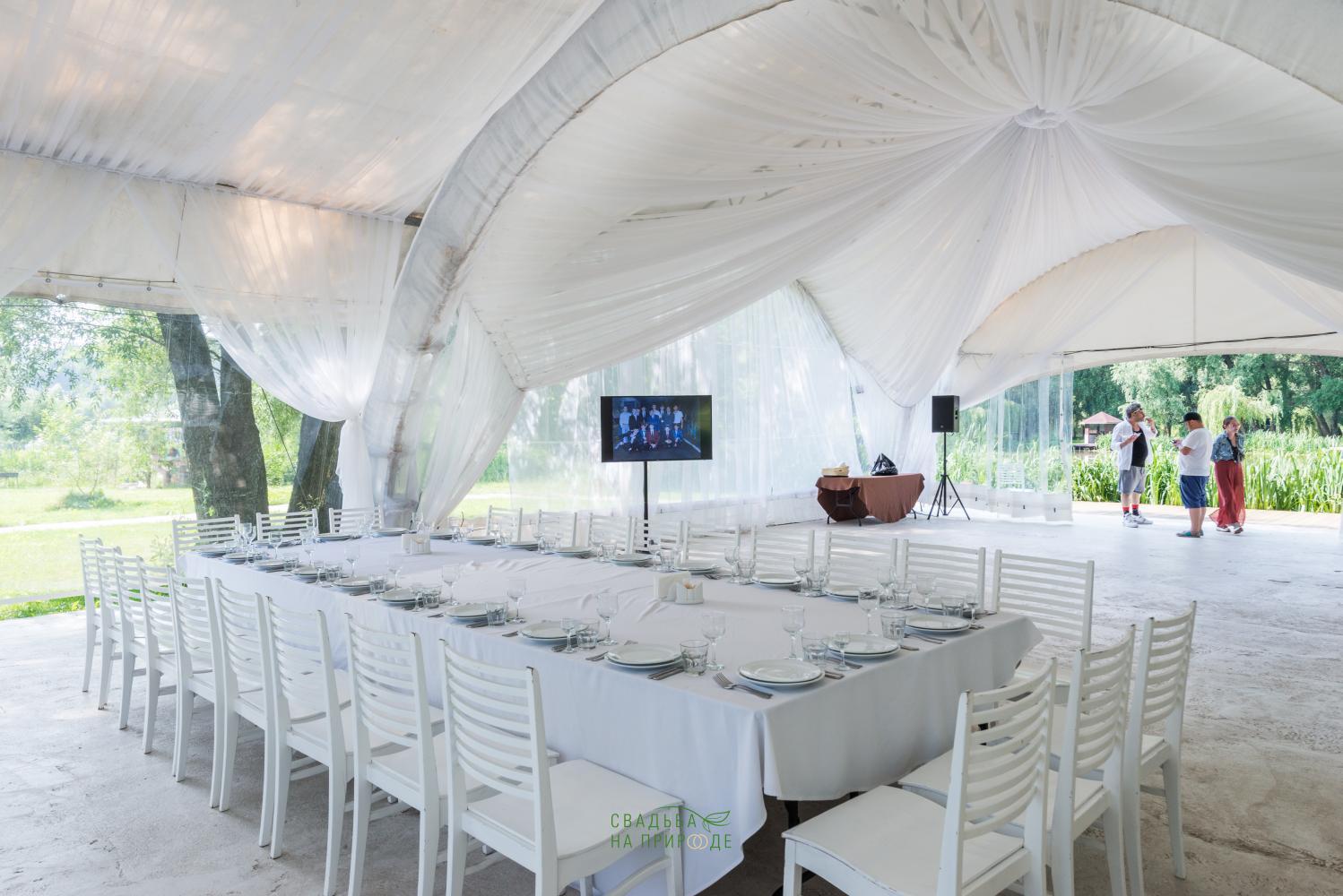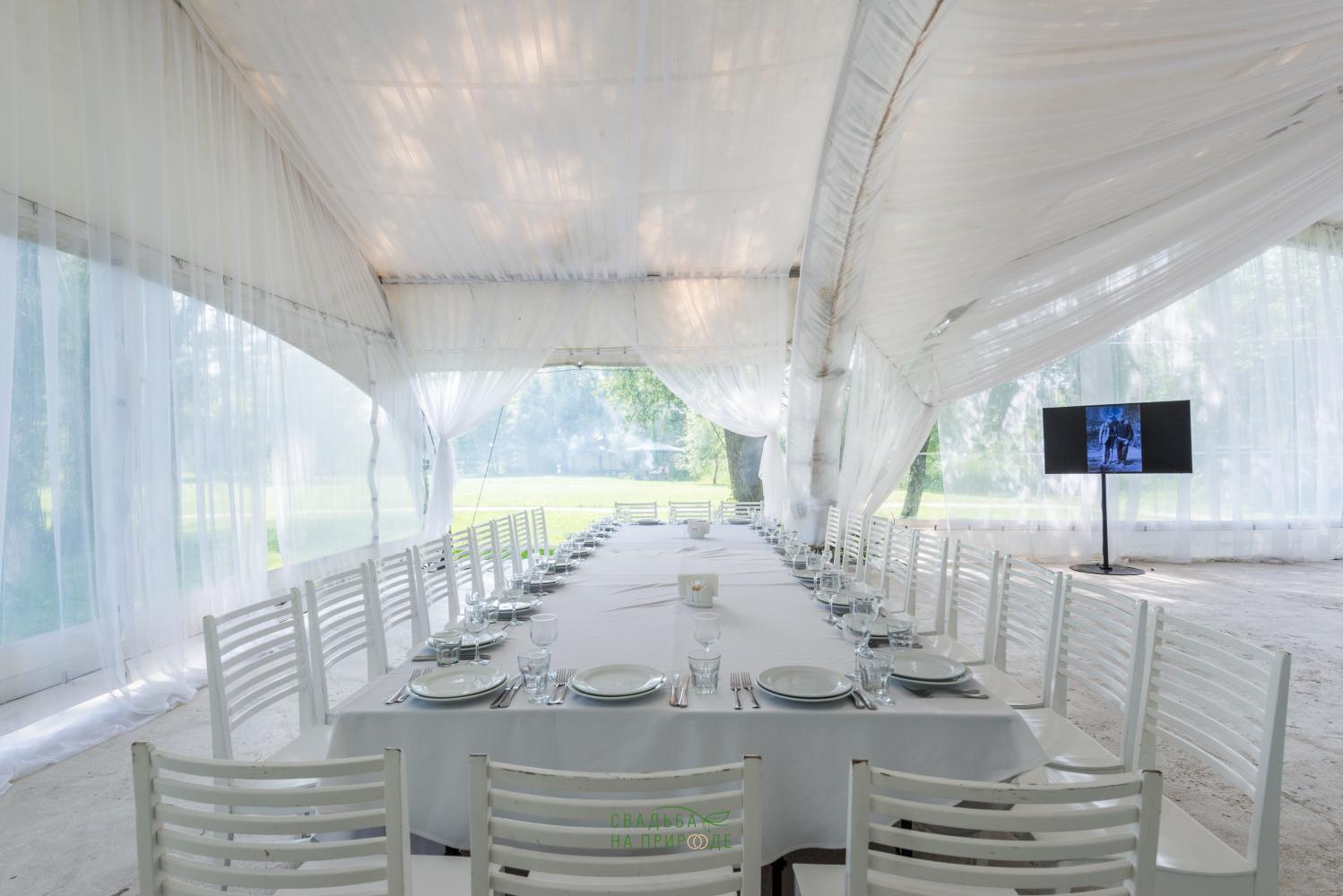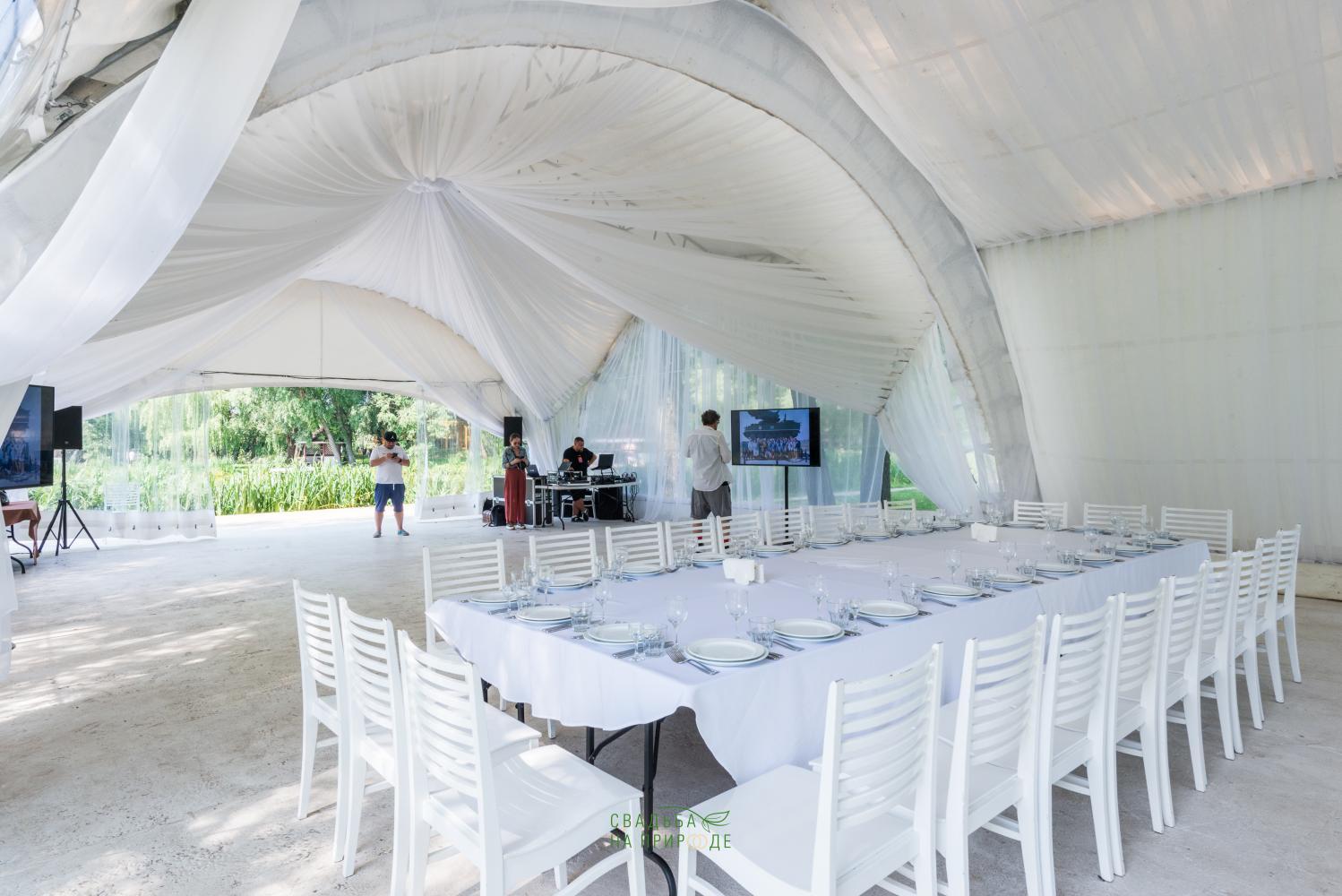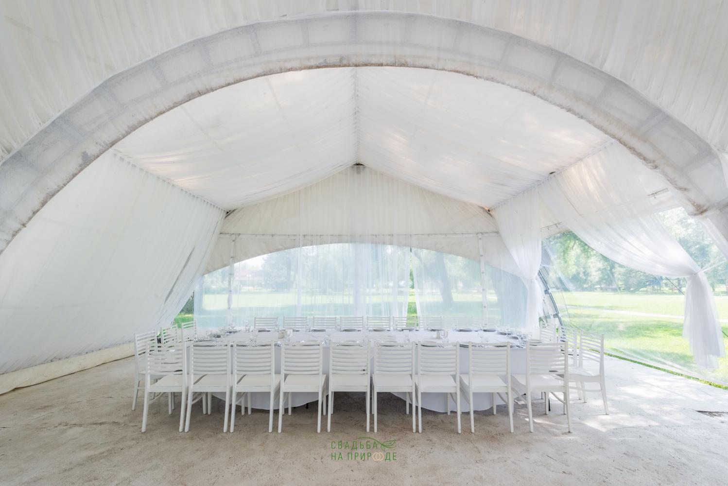 Сам шатер и внутреннее оборудование было в отличном состоянии: столы, стулья, скатерти - все было достаточно новым.