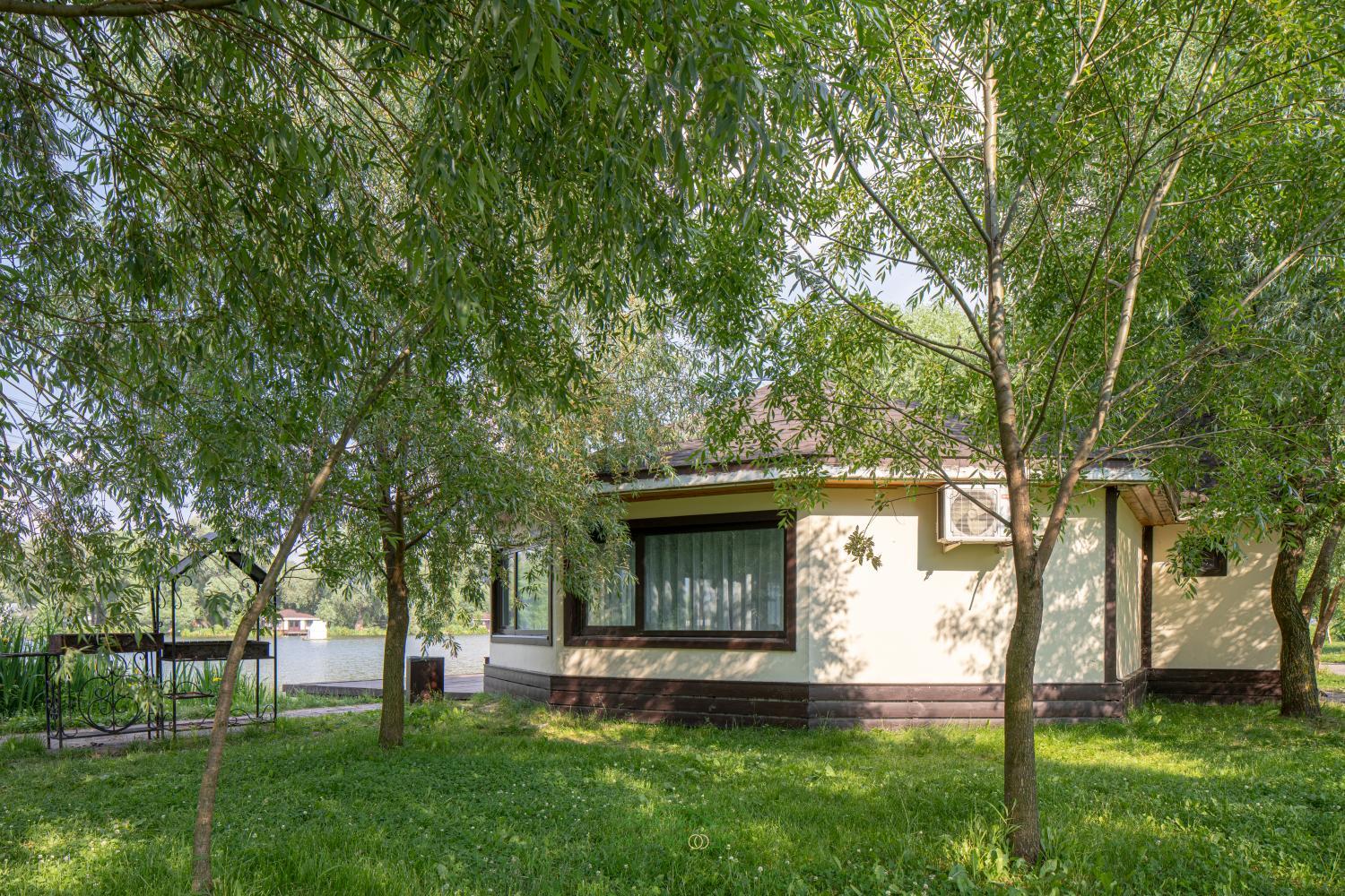 Срубы, бунгало, кемпинг, крошечные водоёмы. Закос под Русь бревенчатую, но не поверилось)) хотя мило.