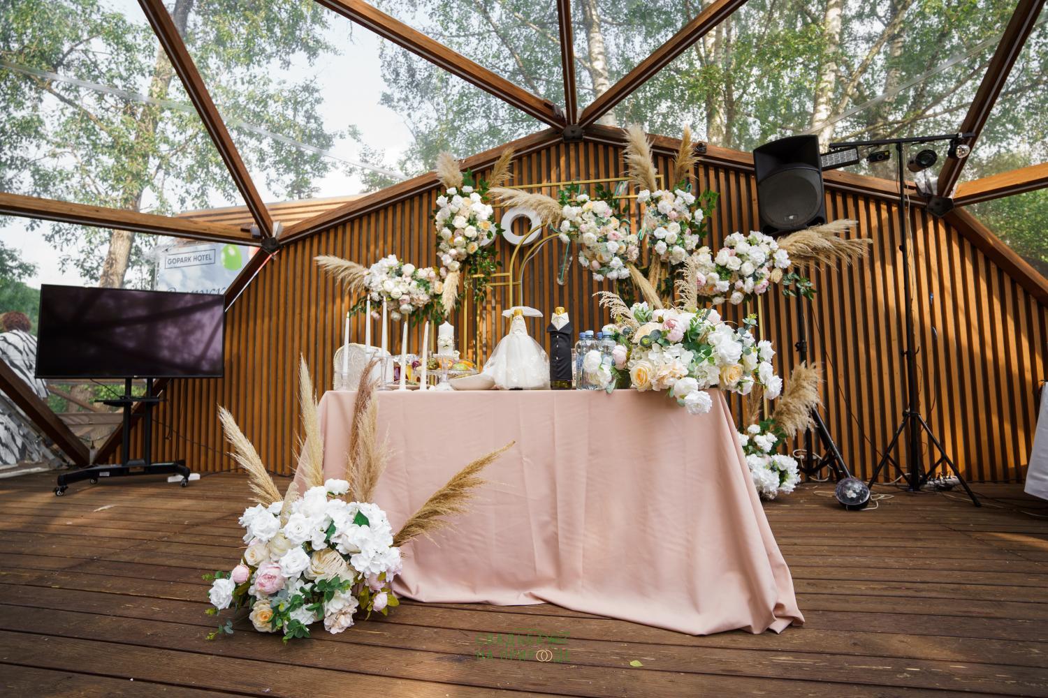праздновали свадьбу (30 чел) в сентябре в GoPark в малом шатре Омега, очень атмосферное место, уединение с природой, есть две зоны для выездной регистрации - очень красивые и могут не нуждаться в украшении. Наш менеджер - Наталья Навальная невероятный человек, очень спокойная и рассудительная, во всем помогала с организацией, чтобы мероприятие прошло потрясающе. Гости остались очень довольны едой, напитками, качеством обслуживания. Спасибо вам большое за такое прекрасное место. А утро после вечеринки очень приятно было провести у бассейна, нормальный завтрак на шведском столе, все чисто, аккуратно. единственный недостаток только организация хранения в номере, который нам предоставили как молодоженам - хотелось бы иметь какой то комод, потому что вообще некуда было положить одежду, нижнее белье ( были вешалки да, но их очень мало на двоих) мелочи типа ухода (парфюм, предметы личной гигиены)