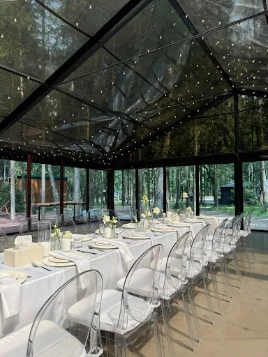 - Готовая инфраструктура: В отличие от шатра, веранда — это часть капитального строения. Здесь уже есть электричество, стационарные туалеты, барная стойка и кухня в шаговой доступности.